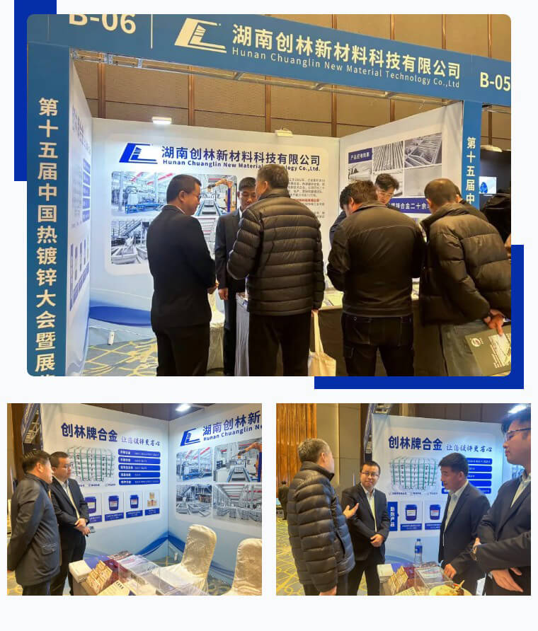 會(huì)上,湖南創(chuàng)林新材料展示了多款熱鍍鋅合金產(chǎn)品,這些產(chǎn)品在提高鍍鋅效果、降低鋅耗等方面表現(xiàn)出色,吸引了不少行業(yè)內(nèi)人士的關(guān)注??偨?jīng)理周業(yè)翔攜團(tuán)隊(duì)熱情接待參觀嘉賓,并就產(chǎn)品技術(shù)、市場(chǎng)開拓、合作發(fā)展等事宜與嘉賓進(jìn)行探討分享,交流互鑒。