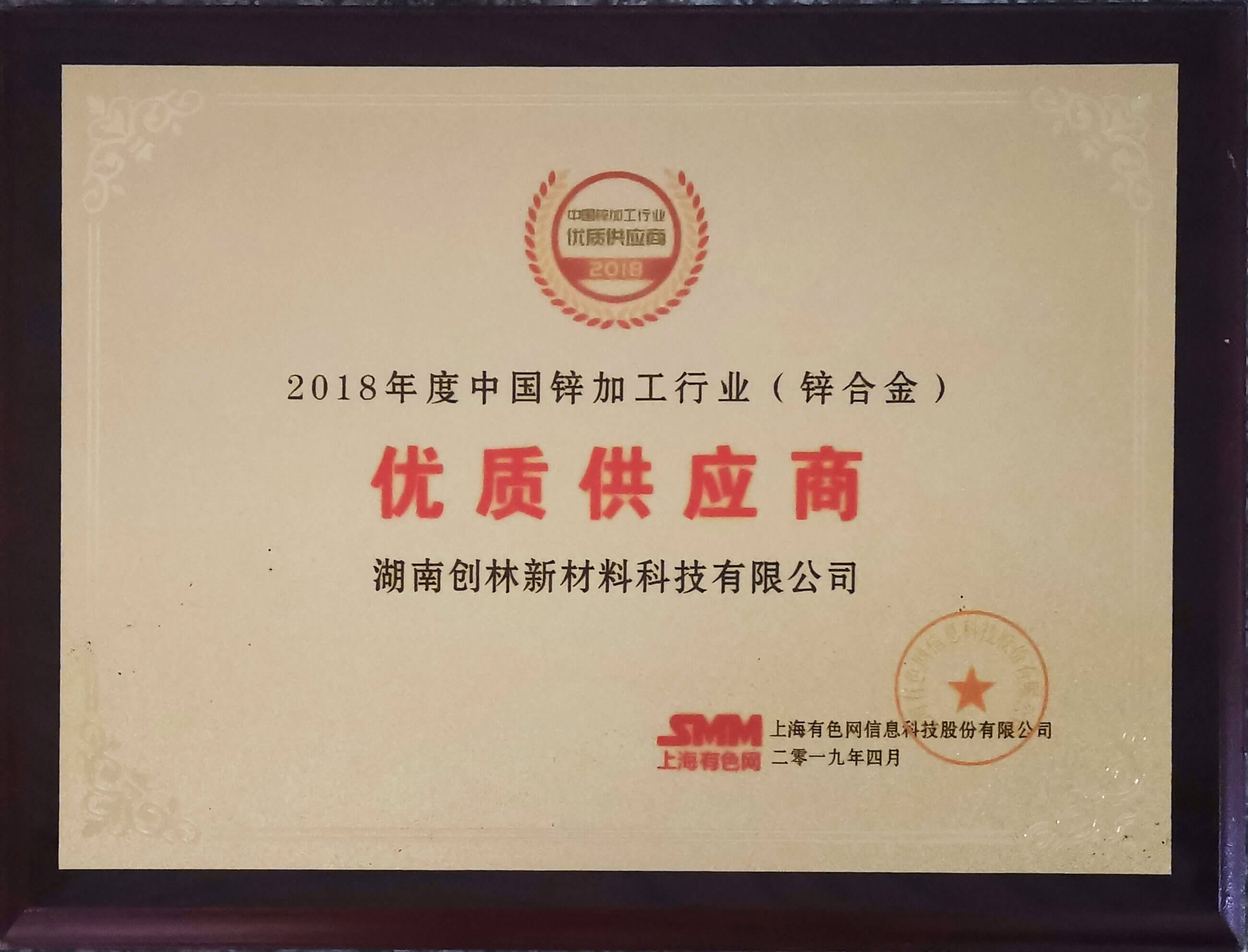 2018年度中國鋅加工行業(yè)優(yōu)質(zhì)供應(yīng)商
